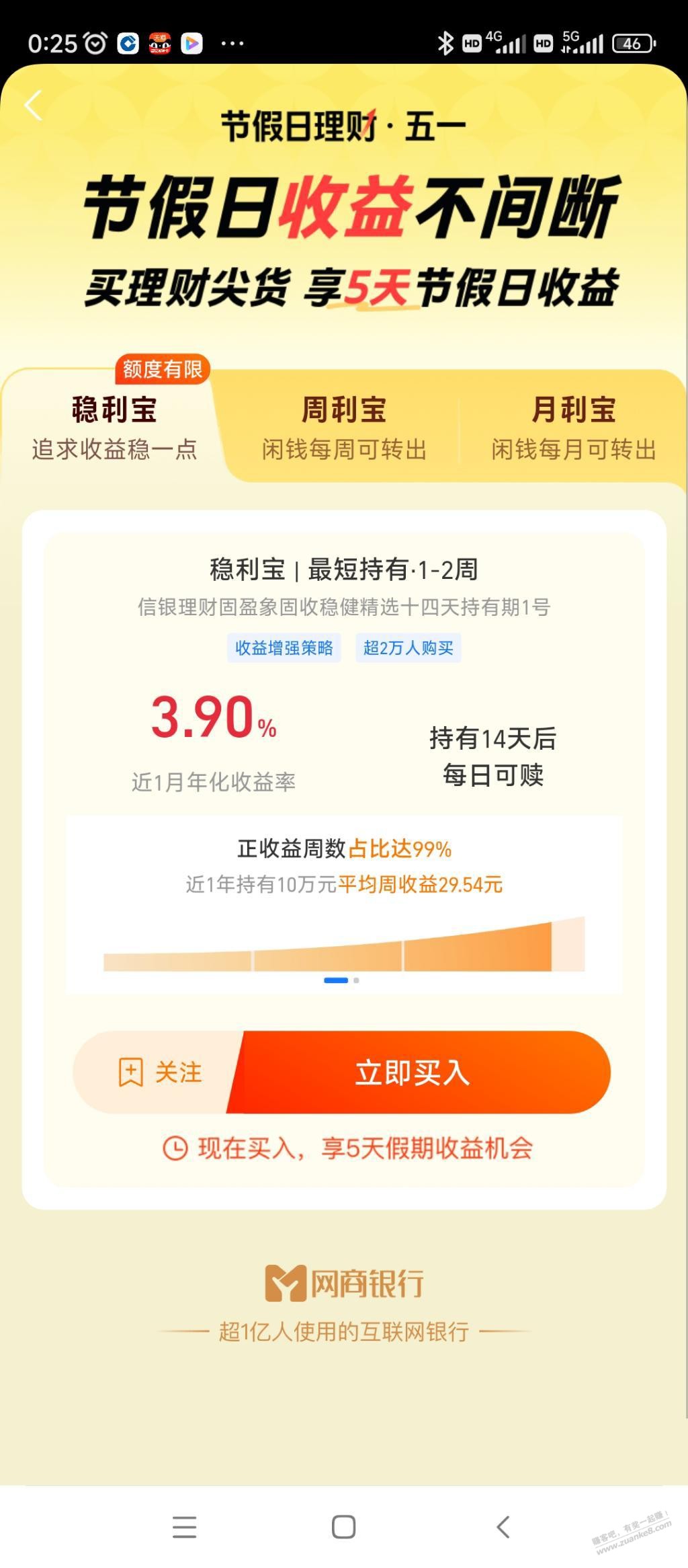 看号出,支付宝余利宝顶端节假日理财.五一横幅进去会弹红包,我弹了两个买余利宝也能用10万抵扣5