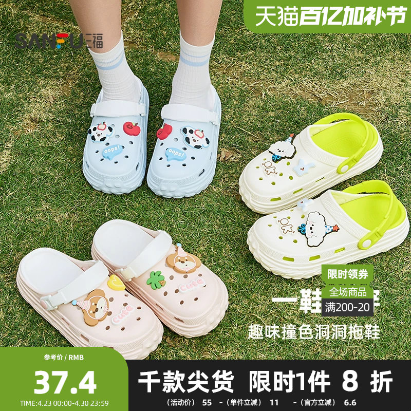 三福趣味撞色洞洞拖 部分首单22亓 金币页面加购凑入会100-10券7亓左