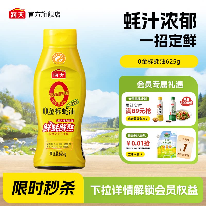 如弹5限时洪包付0.4亓 海天零添加耗油250g