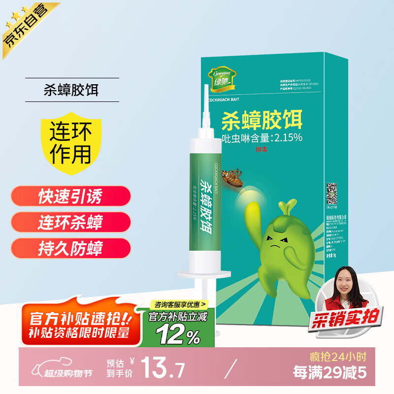 如有10-2全品券 小程序拍下3.98亓,买一送一 绿驰 8g蟑螂药全窝端
