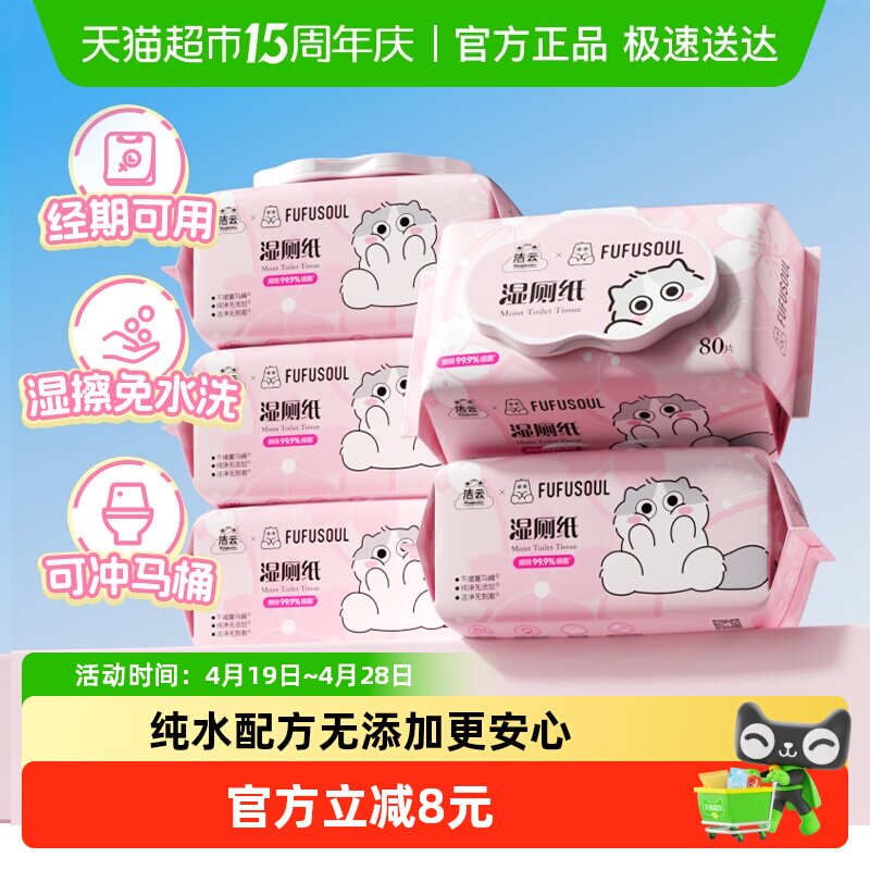 洁云联名樱花湿厕纸80抽5包 桃金币后16.75亓