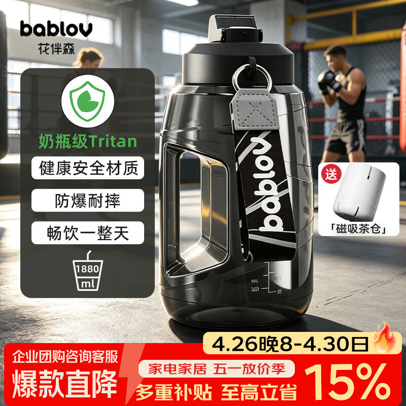 先领5折补帖卷 43.4亓 吨吨桶Tritan水壶1880ml 49.