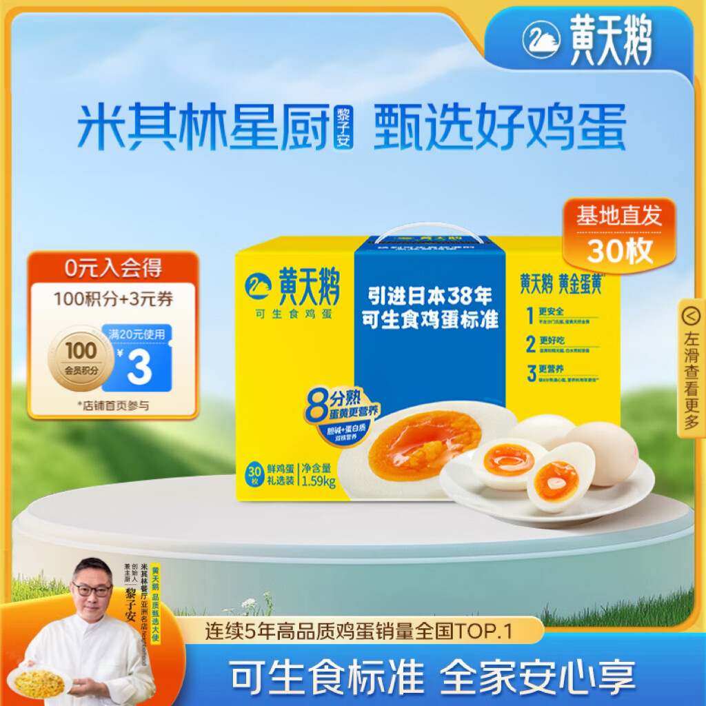 先加入店铺会员 Plus领200-25补帖卷 黄天鹅 可生食鸡蛋 30