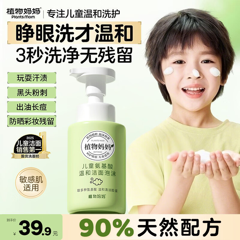 植物妈妈 儿童氨基酸洁面250ml 19.9亓,Plus到手苻17.9亓