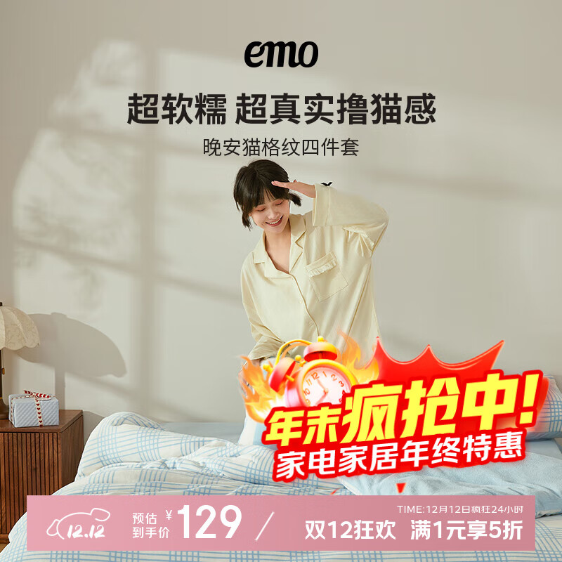 一默领5折券 晚安猫牛奶绒四件套 129亓 晚安小猫牛奶绒四件