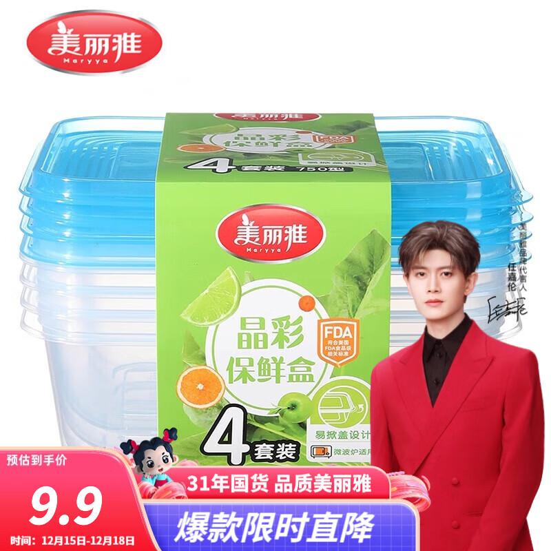 特价页面9-6奍 美丽雅 750ml密封保鲜盒*4个装 凑后1.92