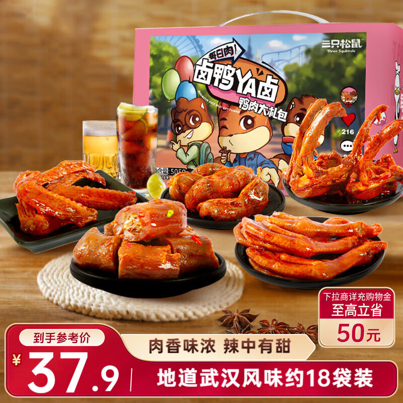 地区价 4.9 三只松鼠鸭肉大礼包505g礼盒 三只松鼠麻辣零食大礼