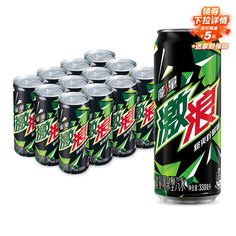 掉落5券,叠首单付12.9亓 百事可乐激浪 柠檬味汽水330ml*12听