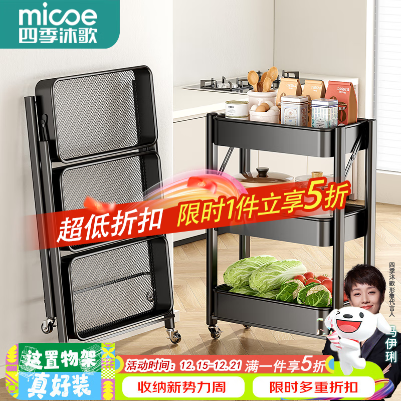四季沐歌 厨房置物架 3层耀黑可折叠常规kuan
