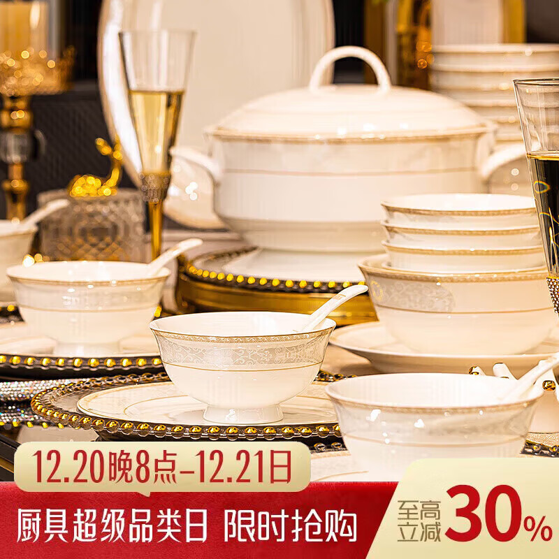 厨递餐具整套家用碗盘28头配汤碗,凑后68.93