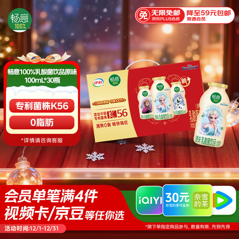伊利畅意如酸菌原味 100ml*30瓶 礼盒装