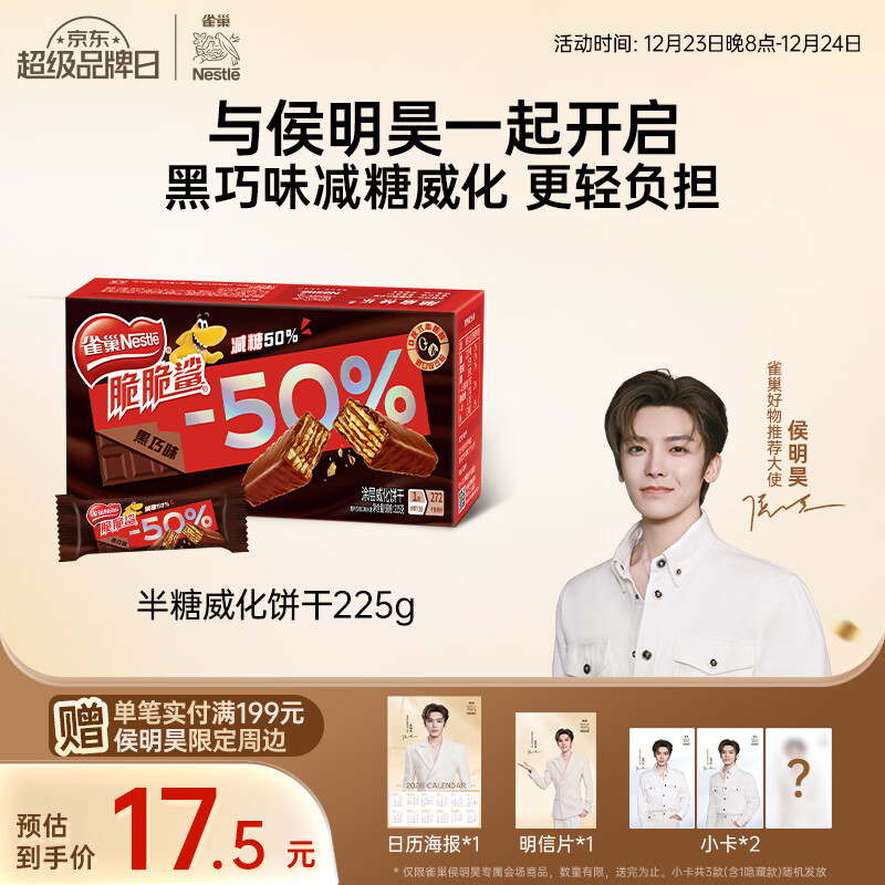 雀巢(Nestle)脆脆鲨减糖50%半糖巧克力夹心威化饼干18条225g https://u.jd.com/ArsFi24