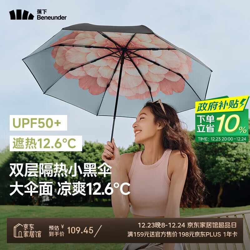 蕉下 三折双层黑胶晴雨伞防晒伞 花椿,76送plus年卡 凑僤入会价1