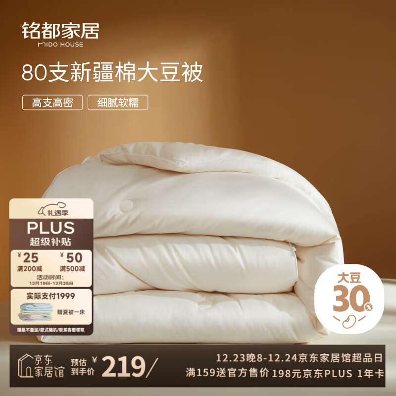 Plus领480-60券 MIDO HOUSE铭都 80支A类全棉30