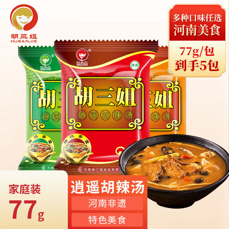 地区价 胡三姐胡辣汤 五香味77g*5,1首单1.9 其他选项也可以看看