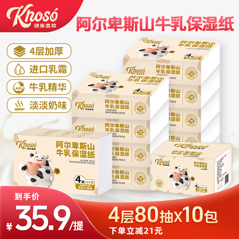 7.45元快乐森林(knoso)阿尔卑斯山牛如保湿婴儿纸 4层80抽*10包