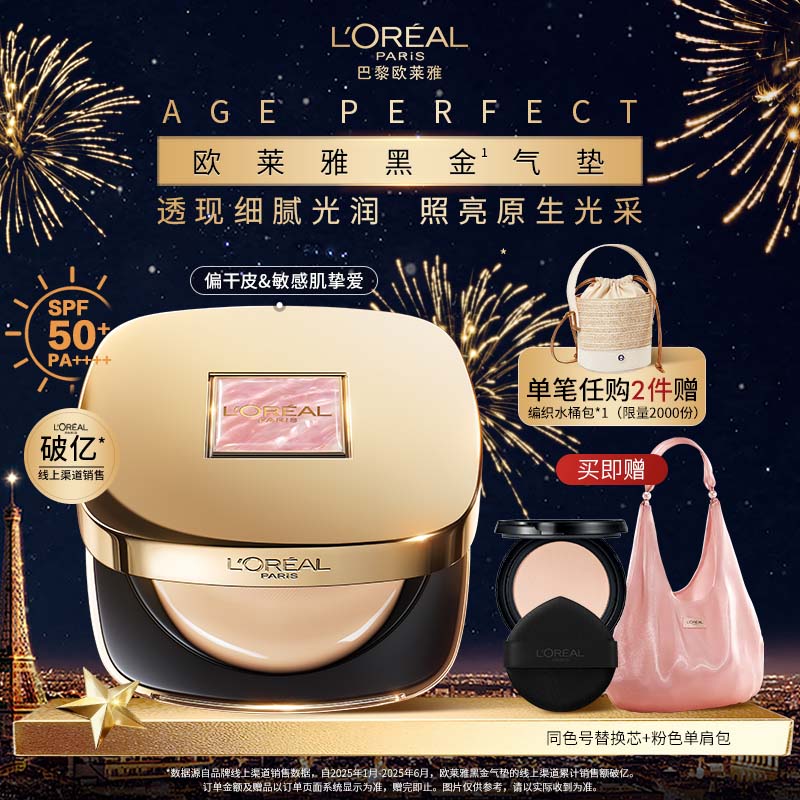 秒杀会场 (翻到产品加购): 170.33亓欧莱雅 黑金气垫贝母限定版