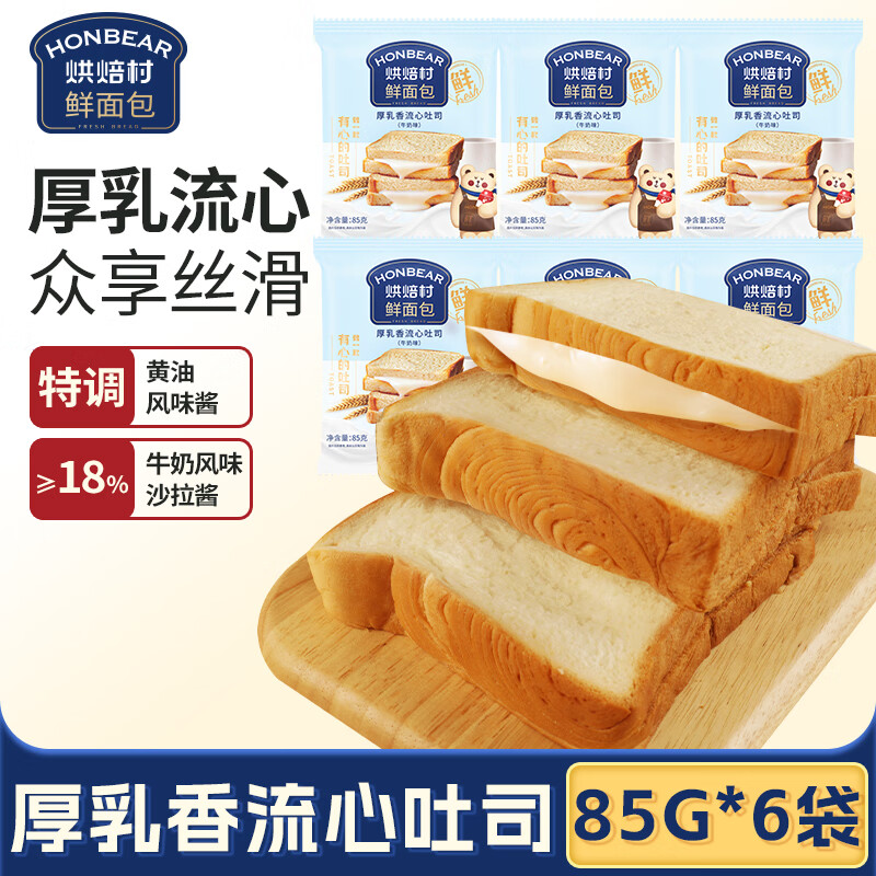 5.99元烘焙村 厚如香流心吐司牛奶味85g*6袋,1首单