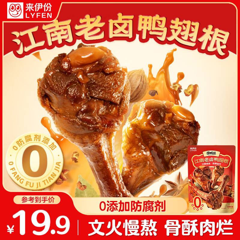 用南宁9折和黑五 来伊份馋鸭狂老卤鸭翅根约420g/12根 4件6.37一