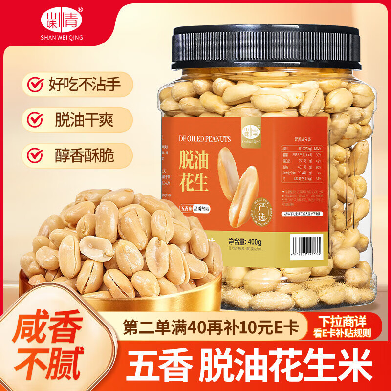 如有楼上vx 摇有惠的15-5 山味情脱油花生米五香味400g罐装 弹7立