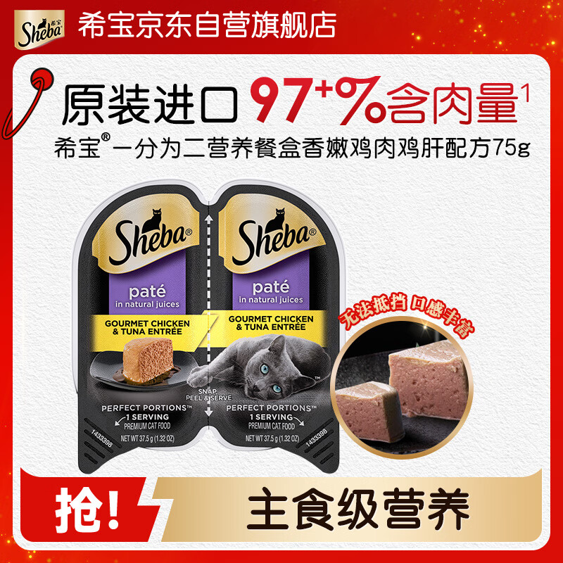 掉落5券,各拍1付0.89亓 希宝一分为二营养餐盒猫主食级罐香75g单盒