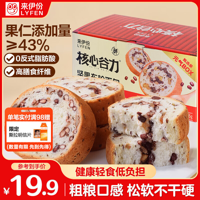 部分地区4.9亓 来伊份奇亚籽坚果车轮面包425g