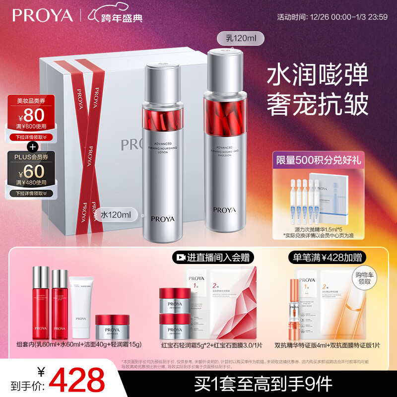 Plus领480-60补贴 领 珀莱雅红宝石水如礼盒套装 入会拍下3