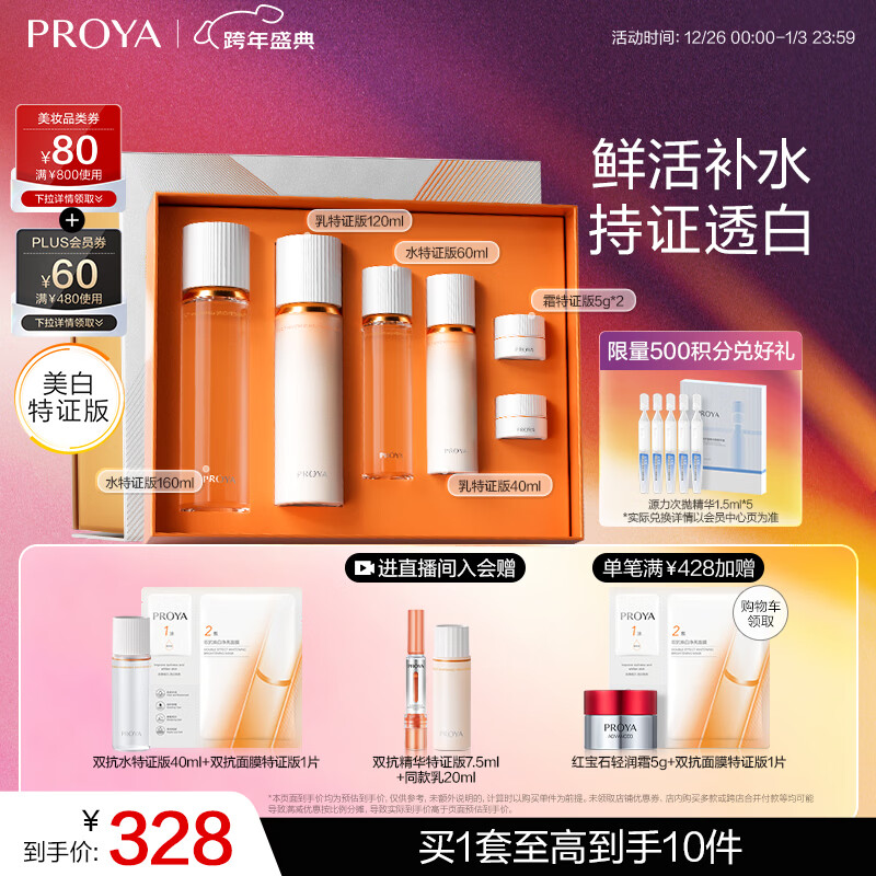 Plus领480-60补贴 领 珀莱雅双抗水如套装礼盒 凑后244.