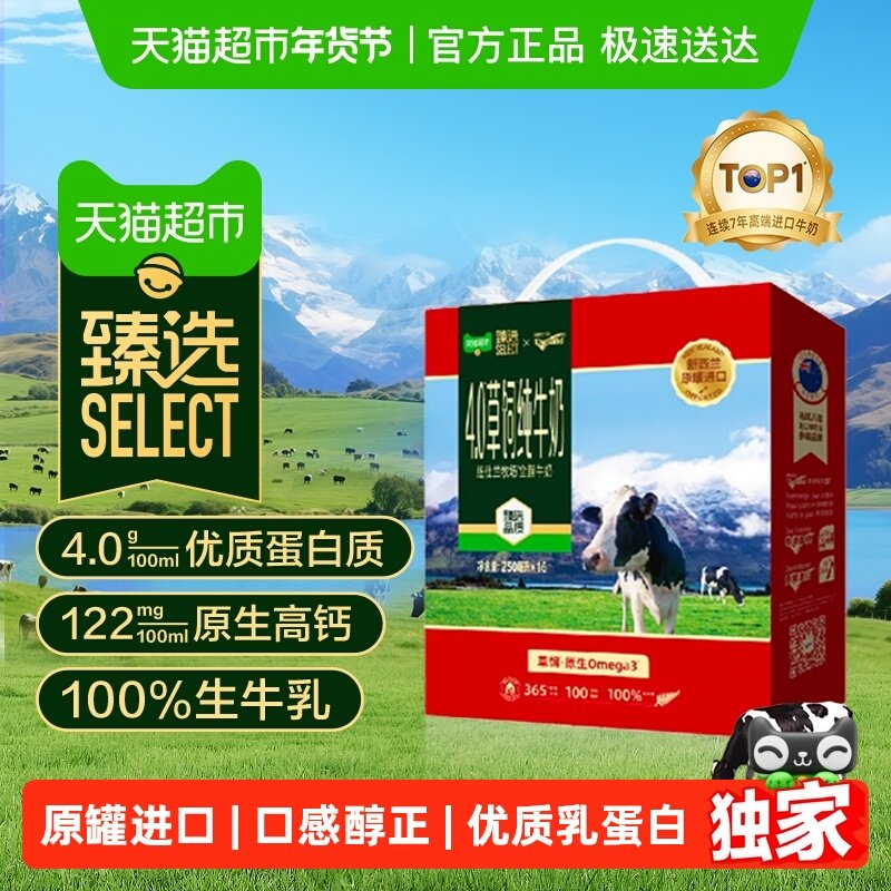 纽仕兰4.0蛋白全脂高钙纯牛奶250ml*16盒,领李金 超市首页搜索