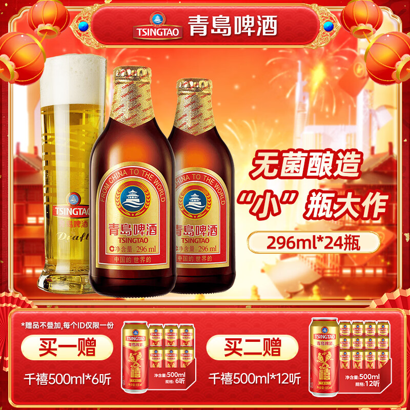 Plus先领200-25补帖卷 青岛啤酒 小棕金296ml*24瓶 P