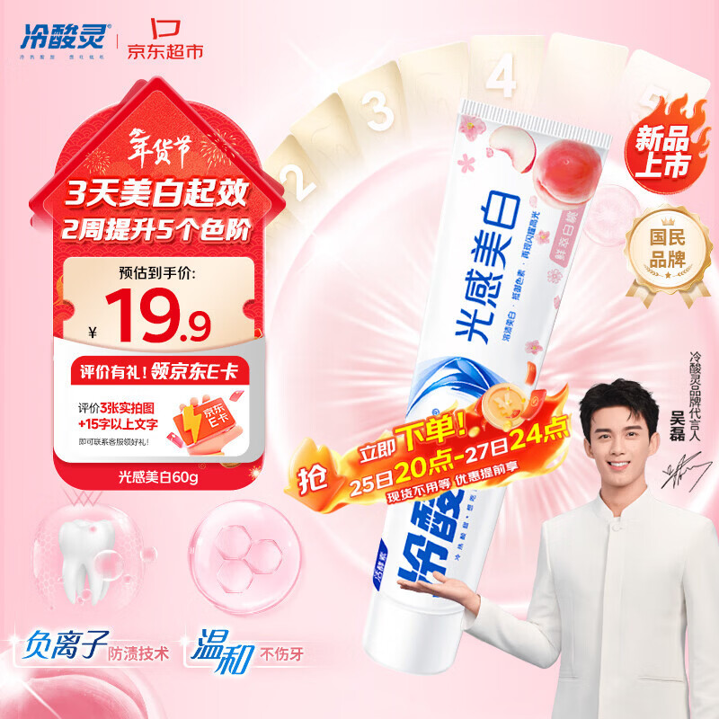 冷酸灵光感美白牙膏60g 拍6件59.7亓 反42超市卡 到手17.7亓