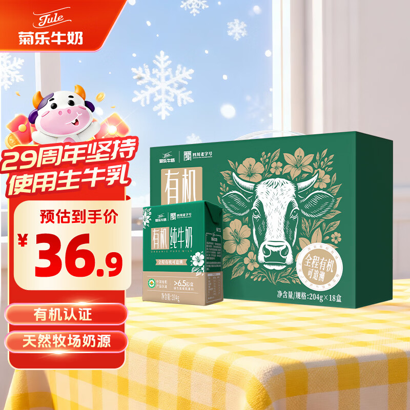 菊乐 有机纯牛奶204g*18盒 31.3亓自营包邮,新客减5亓 *全程
