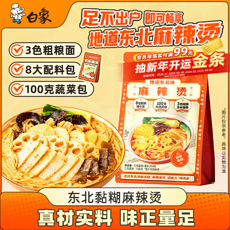 弹3立减,学生用户凑后2.46亓 白象 方便面 麻辣烫314g单袋 凑