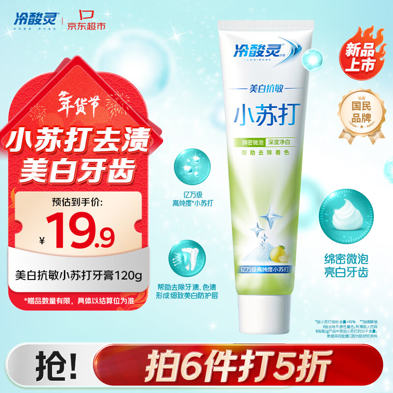 冷酸灵美白抗敏牙膏120g 拍6件59.7亓 反30超市卡 到手29.
