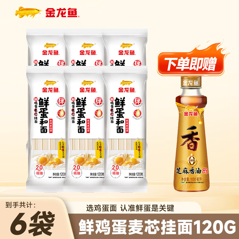 先抢5.1-5补帖卷 金龙鱼 鲜蛋和面挂面120g*6袋 9.9亓,赠