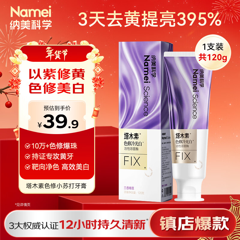 【自营】纳美 美白牙膏120g/支 买2件19.8亓 云费,plus包邮