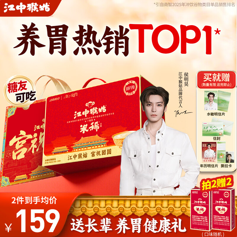 plus先领2涨补帖卷 江中猴姑 猴头菇米稀900g礼盒 plus买