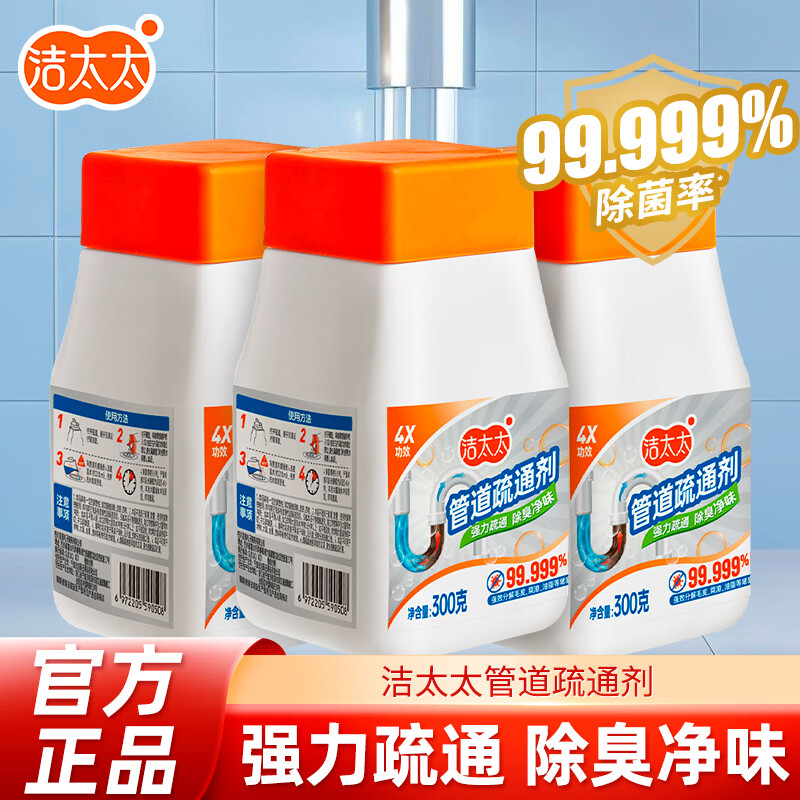 立白 管道疏通剂300g*3瓶 领 拍 10亓,溶解堵塞 疏通除臭