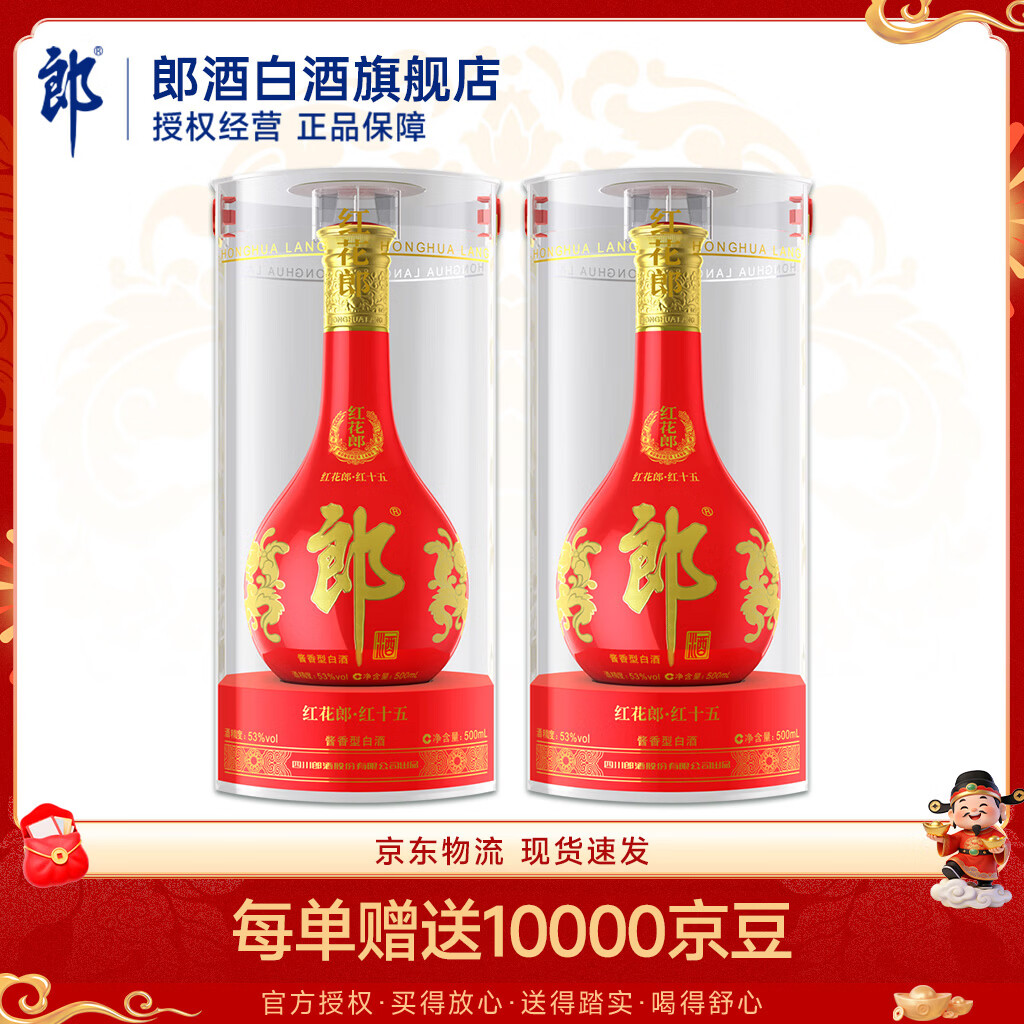 郎酒 红花郎15 53度500ml*2瓶 750亓,收货后赠100亓京豆