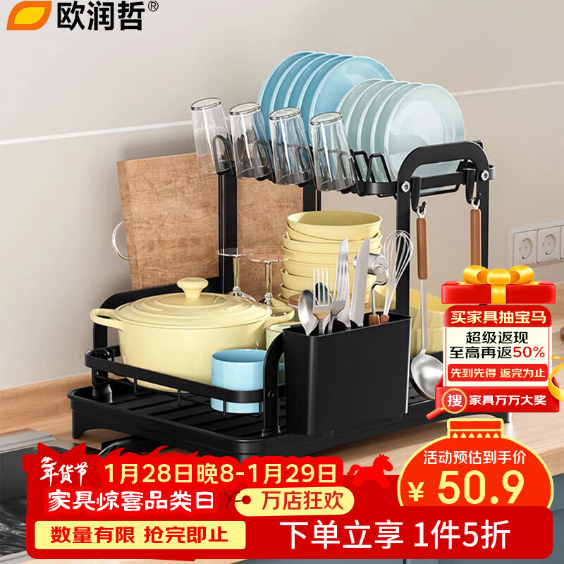 欧润哲黑色H型扁铁双层碗碟架,凑后25.18