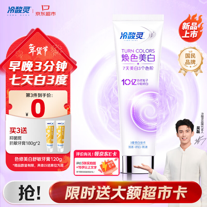 冷酸灵色修焕色美白牙膏120g Plus拍3件凑后41.3亓 反21超