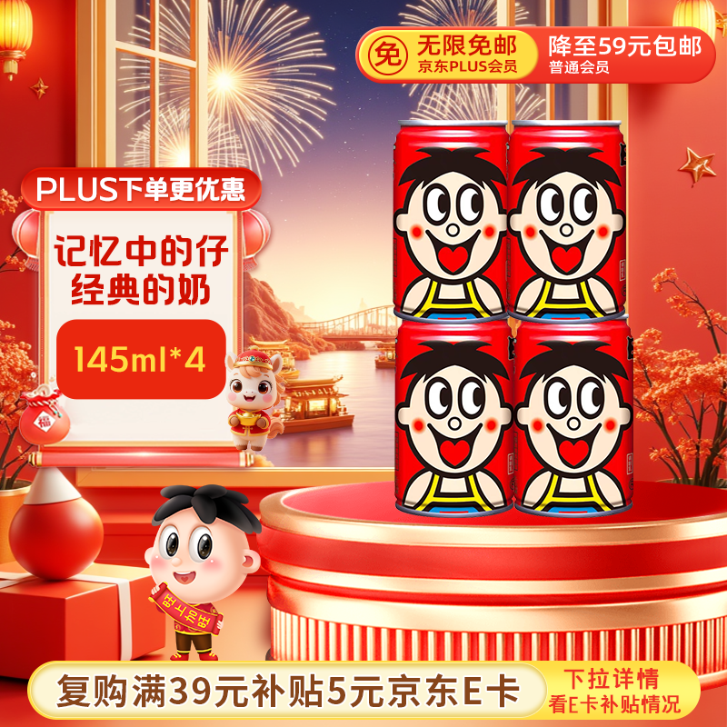 旺旺 旺仔牛奶145ml*4罐 入会叠2首单拍下3亓