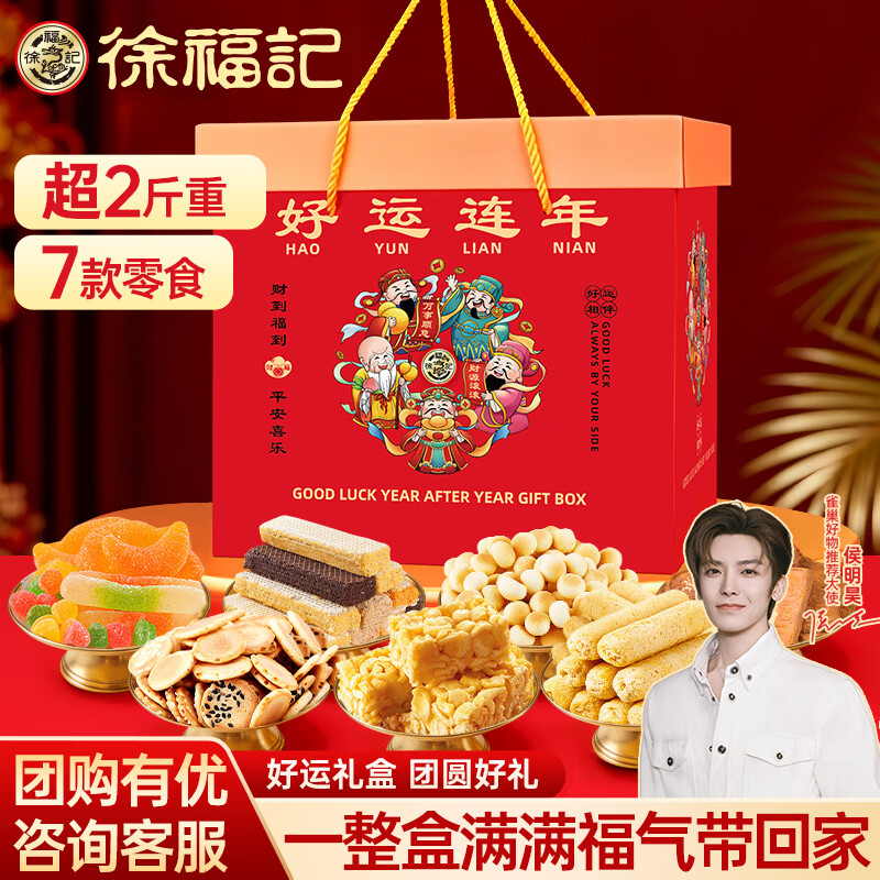 先领105-30卷 徐福记 大吉大利年货礼盒1058g 买3件89.7