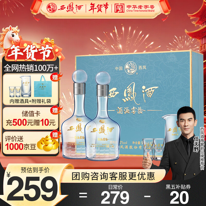 先领200-21卷 【自营】西凤酒 10年52度 海窖龄500ml*2瓶