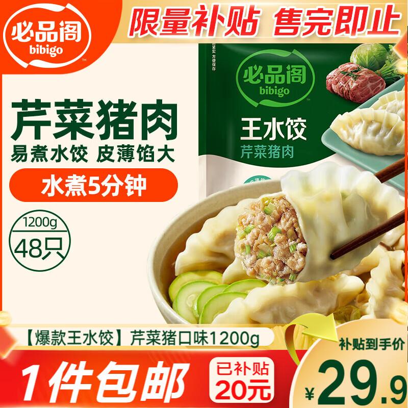 必品阁 招牌系列猪肉水饺1.2kg 29.9亓自营包邮,新客减2
