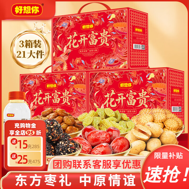 好想你花开富贵礼盒1306g*3 拍下99.9亓 折33.3亓/箱