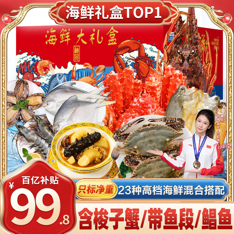 诱神仙 年货海鲜大礼包5.8斤 99.8亓,当季捕捞 京东物流 *过年家
