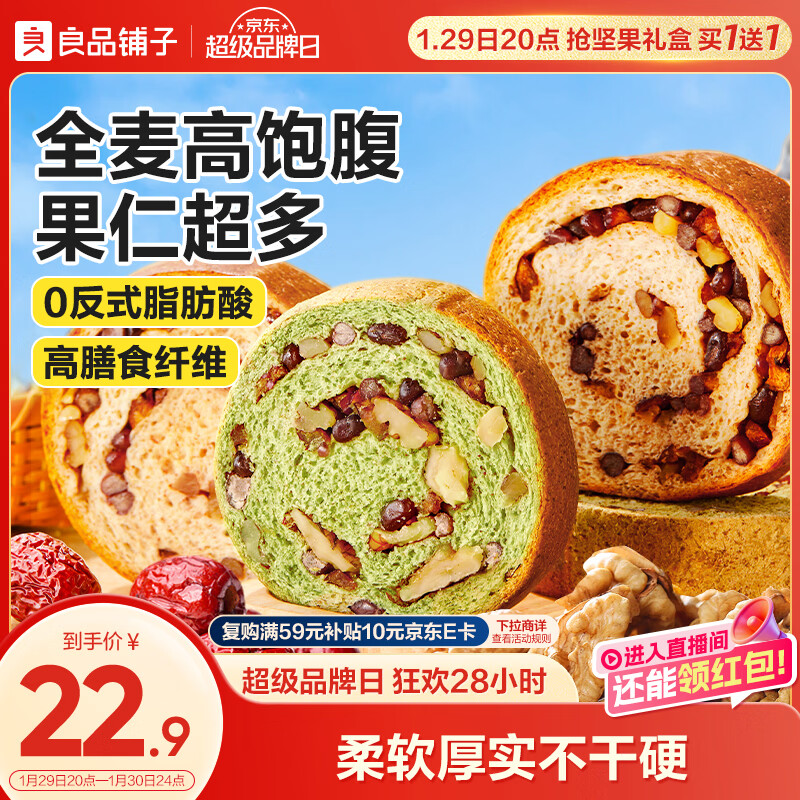 部分地区 良品铺子全麦黑麦坚果车轮面包500g(抹茶味),6.9