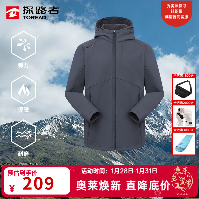 Plus先领3张补帖卷 探路者 男女户外防风软壳外套 Plu实.付