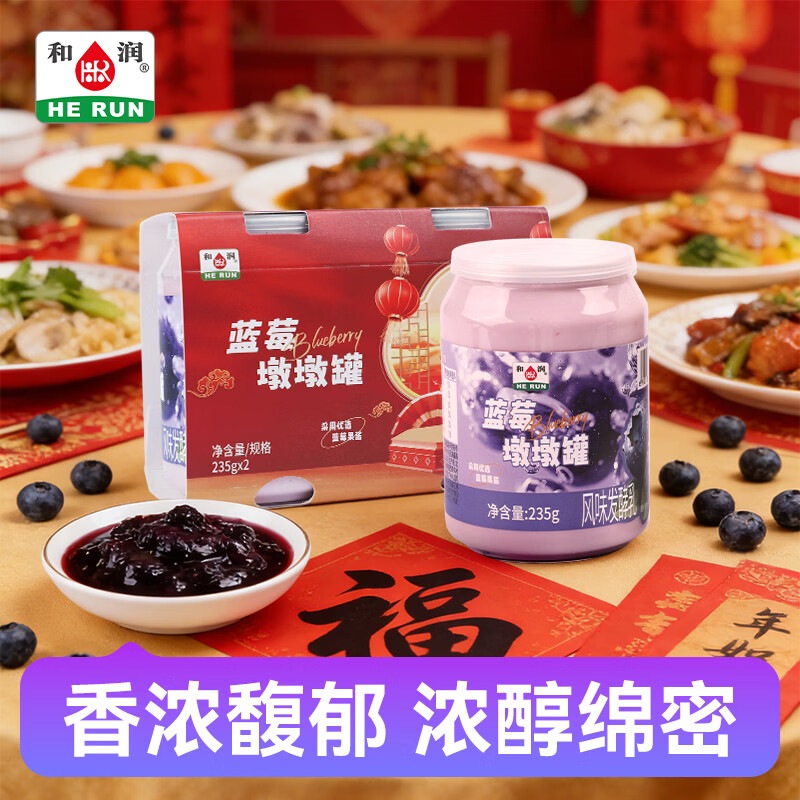 如有200-20黑五券 拍4件凑后8.68/件 和润蓝莓墩墩罐235g*2